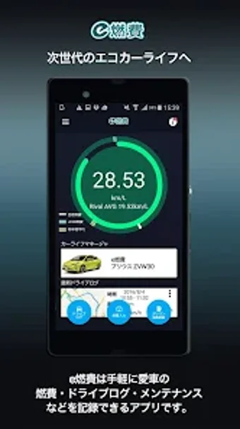 e燃費 - お得なカーライフをサポート มีอินเตอร์เฟซที่ใช้งานง่ายทำให้สามารถจัดการกับประสิทธิภาพการใช้เชื้อเพลิงของรถยนต์ การบำรุงรักษารถยนต์ และบันทึกการขับขี่ได้อย่างง่ายดาย